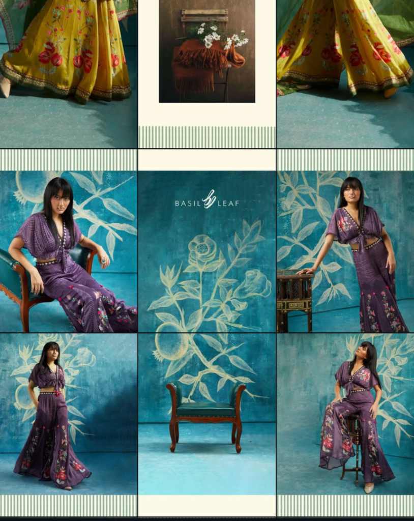 Basil Leaf is a women’s wear brand that blends timeless Indian craftsmanship with contemporary design sensibilities. Their collections highlight vibrant colors, hand-drawn floral inspirations, and rich detailing that celebrate femininity in a bold yet graceful way. With an aesthetic rooted in art, heritage, and modernity, Basil Leaf designs garments that exude elegance while staying versatile for today’s women.